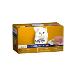 Les Mousselines Gold de Purina sont une délicieuse recette conçue pour offrir à votre animal de compagnie des sensations gustatives uniques. Ce lot contient des boîtes Mousselines moelleuses et savoureuses au bœuf, au foie, à la dinde, au thon ainsi que d’autres saveurs, toutes de qualité supérieure. Préparées avec soin pour offrir à votre chat une sensation de douceur et de tendresse, pour un plaisir gustatif moelleux et velouté!
